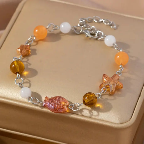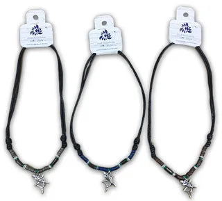 CHIC STARFISH PENDANT NECKLACE WITH BLUE SEA GLASS & FAUX PEARL