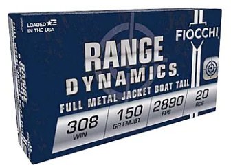 FIOCCHI RANGE DYNAMICS FULL METAL JACKET BOAT TAIL .308 AMMO