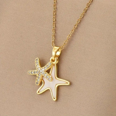 STAINLESS STEEL NECKLACE STARFISH NECKLACE EXQUISITE LADIES 18K GOLD PLATED