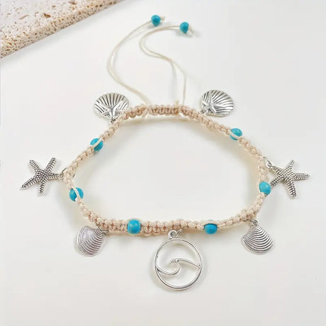 STARFISH & SEASHELL PENDANT WOVEN BRACELET