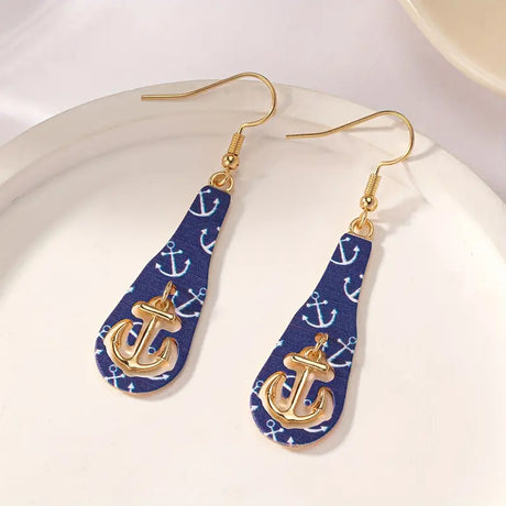 VINTAGE DROPLET SHAPE ANCHOR PATTERN DANGLE EARRINGS