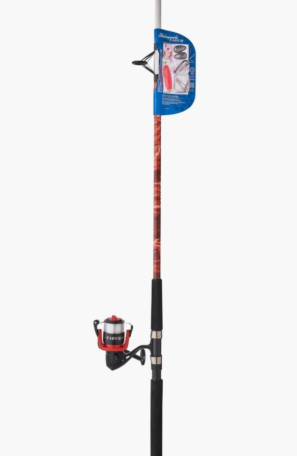 The Shakespeare® Tiger® Spinning Catfish Combo Kit is an action-ready combination that's the ideal choice for catfish, striper, and other freshwater and saltwater game fish. The kit features a 23-piece tackle pack and comes with a pre-spooled reel, making it easy for anglers to head straight to the water for an action-packed day of fishing. A durable 2pc rod with stainless steel guides is paired with a 50-size spinning reel creating a powerful setup anglers can rely on.