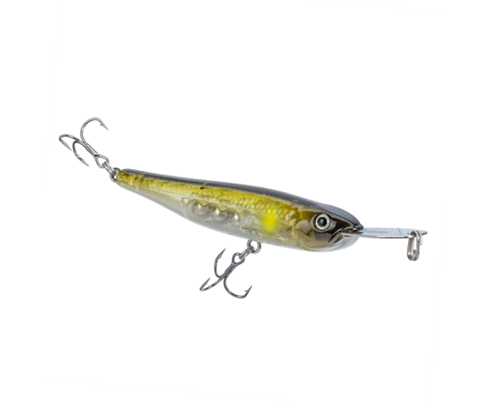 Accurately emulating panic-stricken baitfish, Strike King’s Evader is the small profile, hyper-effective topwater bait that you need in your line up. The metal lip design encourages the Evader to remain at the surface while also adding a bit of extra flash to entice powerful strikes. Great castability and a realistic swimming action elevate the Evader’s performance beyond that of a traditional style topwater bait, and the premium treble hooks are super sticky for keeping fish pegged.
