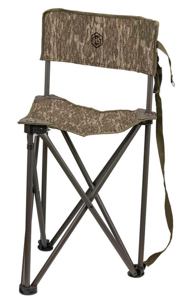 Constructed with durable steel tubes, the Tripod CamoChair is ideal for hunting in a blind, fishing from a bank, and many other outdoor activities. Lightweight and collapsible with a carry strap for easy transport, this essential hunting accessory features a Mossy Oak Bottomland polyester triangular seat with back.