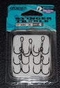 The Stinger Treble Hook features wide-gap round bend hooks that bite deep and hold hard, allowing you to get more fish that you hook in the boat. The innovative feature is the way the eye is attached to the three hooks. Other treble hooks are constructed in two pieces, one wire bent to create the eye and two hooks as one piece and the third hook soldered on as the second. The Owner Stinger Treble Hooks are painstakingly engineered from four separate pieces, three hooks soldered in a perfect trilateral configuration and the eye attached directly on top of the center of the hooks for a balanced treble hook that will hang perfectly and help your lure run straight and true.